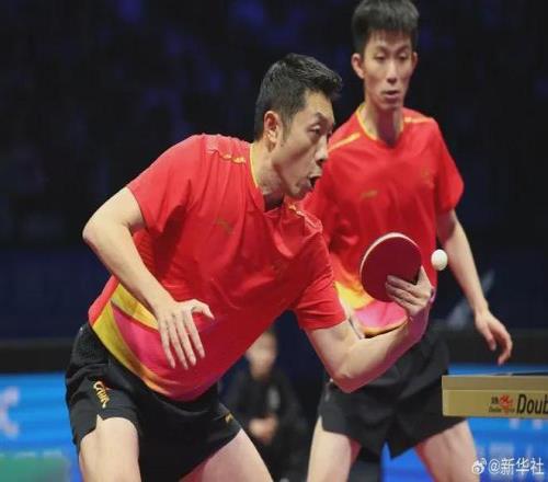 第一盘双打比赛中,北京队黄友政/马龙11-9、5-11、11-4、11-7战胜上海队许昕/周恺。