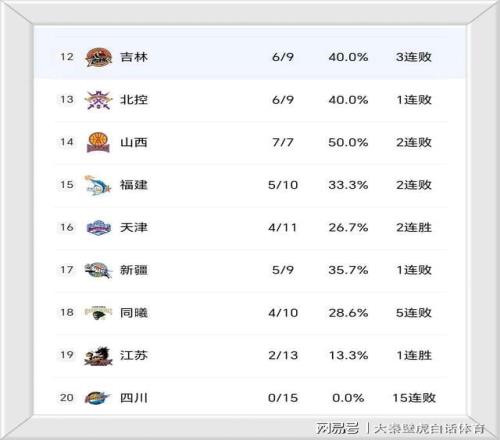 ④、15连败的四川男篮赛季至今仍难尝一胜排名垫底。