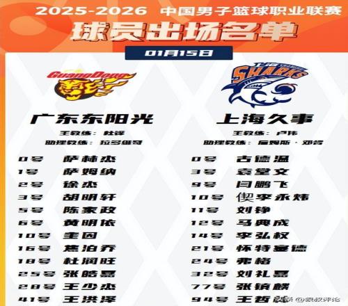 狼叔评论2026-01-15 22:32:49 0 #CBA   #郭士强   #胡明轩   #张镇麟   #王哲林   #萨林格   #上海市   #广东省   #上海焦点战   #徐杰(篮球运动员)