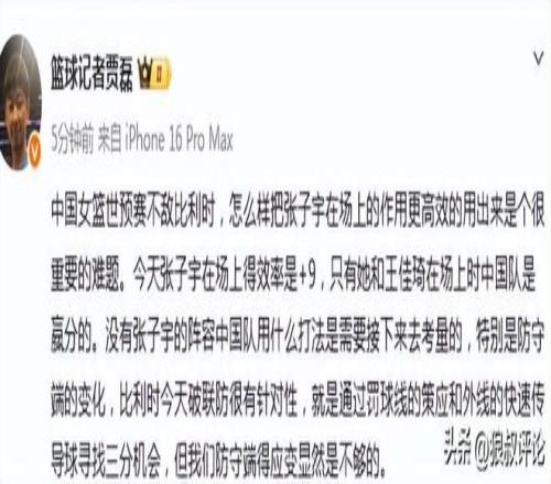 篮球记者贾磊发文点评: