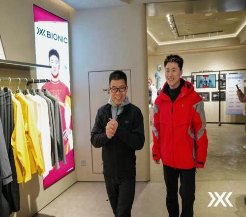 张恒向王心迪介绍X-BIONIC产品