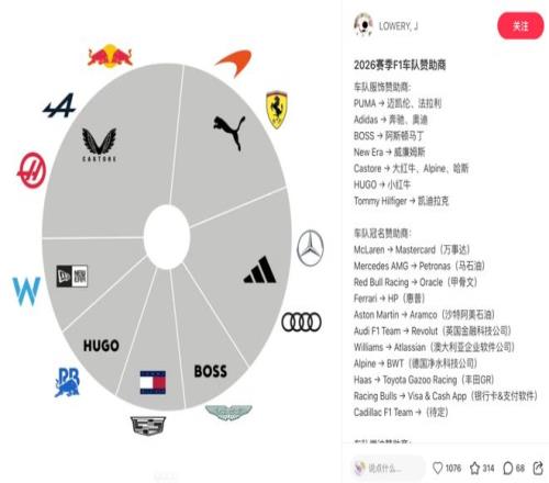 新赛季 F1 车队赞助商们