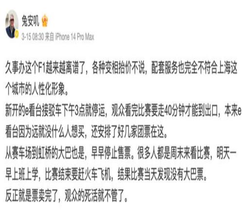 F1 上海站的运营被吐槽