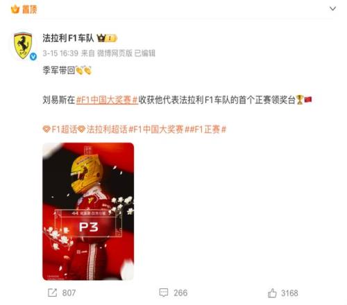 不少 F1 车队以及车手已经入驻微博、小红书等社交媒体平台