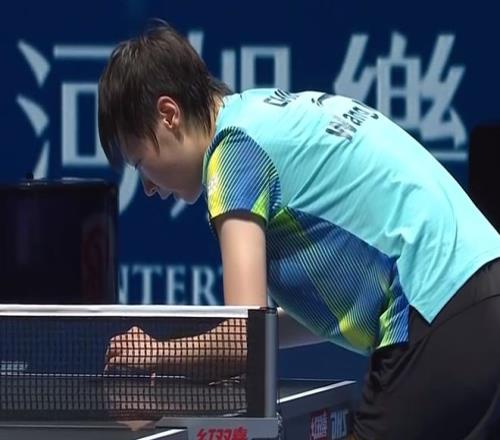 比赛过长,进入轮换发球阶段,发球的一方必须在12拍之内打赢对手,否则算丢分。王曼昱连得2分,11比5拿下第五局。