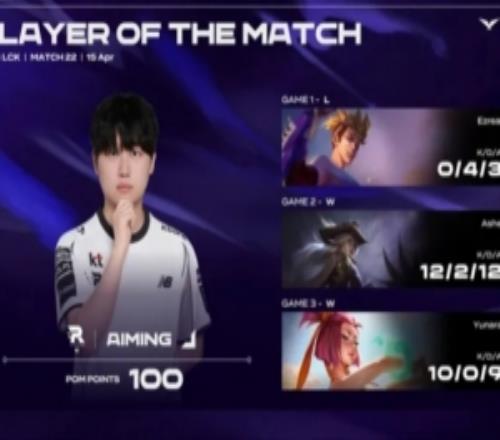 Aiming整个系列赛发挥出色,斩获KT对阵DK系列赛POM! - 24直播网